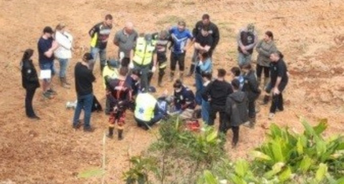 Segundo informações do Sarasul, o condutor foi atingido pelo quadriciclo após o veículo tombar durante a subida de um barranco. O paciente chegou a perder a consciência no local. bombeiros militares efetuaram o primeiro atendimento e acionaram a equipe do Sarasul para conduzir a vítima ao hospital de Tubarão.