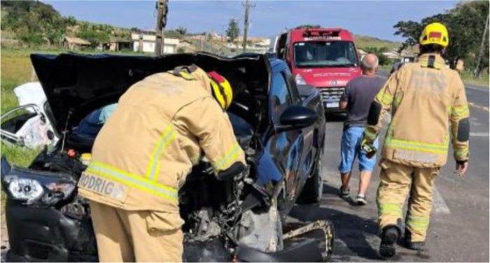 Bombeiros precisaram cortar a porta do veículo para retirar a condutora ferida - Foto: Divulgação Um acidente de trânsito foi registrado na manhã do último sábado, 20 de setembro, na Rodovia Claudino Abel Botega, no Bairro Morro Bonito, em Jaguaruna. A colisão envolveu um Chevrolet Onix, de Tubarão, e uma Fiat Strada, de Jaguaruna.