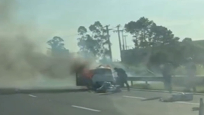 Motorista percebeu um princípio de incêndio e conseguiu parar o automóvel no acostamento - Foto: Divulgação Um veículo pegou fogo no fim da tarde desta sexta-feira, 06 de março, no km 351 da BR-101, no sentido sul, em Sangão. A ocorrência mobilizou equipes do Corpo de Bombeiros e do Centro de Controle Operacional da concessionária.