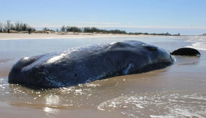 Animal foi encontrado sem vida encalhado na praia de Itapirubá Sul - Foto: Reprodução Uma baleia cachalote foi encontrada morta na última terça-feira, dia 1° de julho, em Laguna. O animal foi localizado encalhado já sem vida na Praia de Itapirubá Sul.