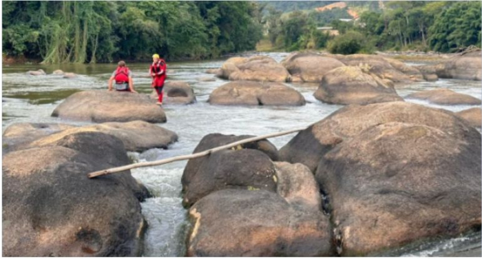 Foto: Corpo de Bombeiros/Divulgação Um homem de 37 anos entrou no rio para salvar um terneiro e foi surpreendido pelo aumento súbito das águas. A ocorrência foi registrada na tarde do último sábado, 17 de maio, em São Ludgero.
