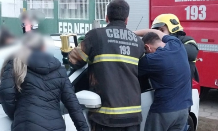 Criança ficou quase uma hora trancada no carro até o resgate - Foto: Divulgação Uma criança de 3 anos ficou preso no dentro de um carro após as portas travarem, na última sexta-feira, 29 de agosto, no Bairro Laranjeiras, em Pescaria Brava.