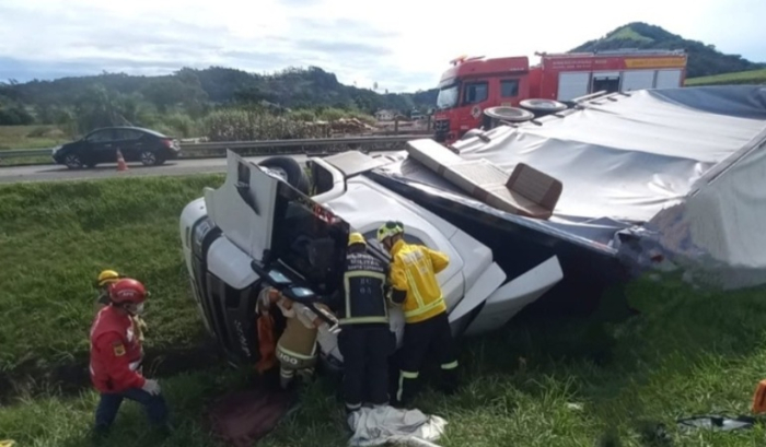 O caminhoneiro teria perdido o controle da direção após ter sido fechado por outro veículo, segundo seu relado aos bombeiros voluntários.