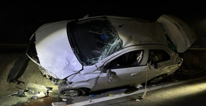 Veículo ficou completamente destruído - Foto: Divulgação Um capotamento na BR-101, km 161, em Sangão, na madrugada desta quinta-feira, 24 de julho,deixou duas pessoas feridas.