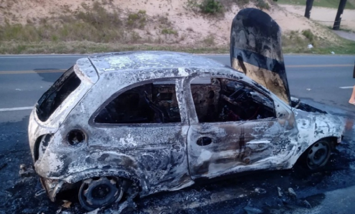 Quando a guarnição chegou para prestar atendimento na ocorrência, o veículo já estava totalmente destruído pelas chamas. Segundo os Bombeiros Voluntários de Jaguaruna, o motorista relatou que sentiu um cheiro forte de gasolina e, quando foi verificar, percebeu que a parte dianteira do motor estava pegando fogo. A Polícia Militar (PM), também auxiliou na ocorrência.