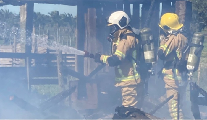 Após combater o fogo e realizar o rescaldo, os bombeiros isolaram o local para realização de perícia.