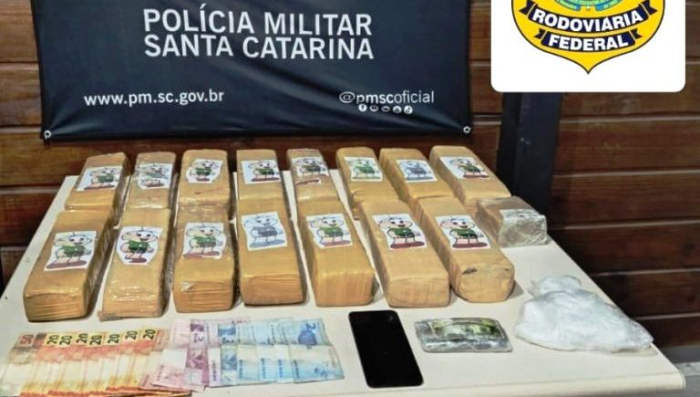 Segundo a PM, a autora confessou que foi contratada por um homem para levar os entorpecentes de Palhoça até Canoas, no Rio Grande do Sul.