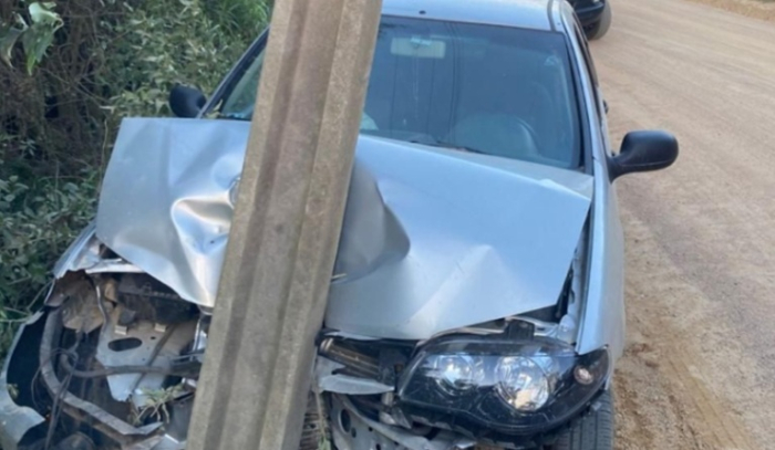 O carro com placas de Tubarão teve a frente destruída - Foto: Divulgação Uma motorista, que conduzia um carro com placas de Tubarão, bateu contra um poste foi registrada na última sexta-feira, 10 de outubro, na Rodovia dos Imigrantes, no Bairro Garganta, em Jaguaruna.