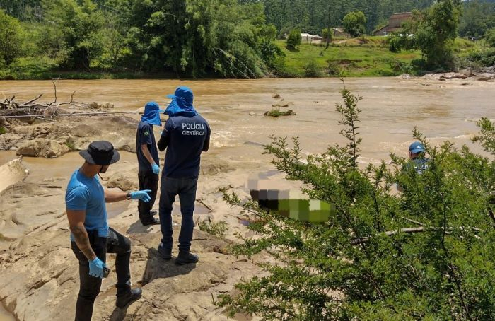 Corpo foi recolhido pela Polícia Científica ainda sem identificação - Foto: Divulgação Um corpo foi encontrado em avançado estado de decomposição no Rio Orleans, que fica entre a cidade de mesmo nome e Pedras Grandes. O cadáver de um homem foi localizado sobre uma pedra.