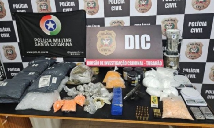 Foram localizados na casa uma pistola calibre 380 com 55 munições, 3,2 quilos de cocaína, 2,4 quilos de maconha, 45 gramas de haxixe e cerca de 1.950 comprimidos de ecstasy.