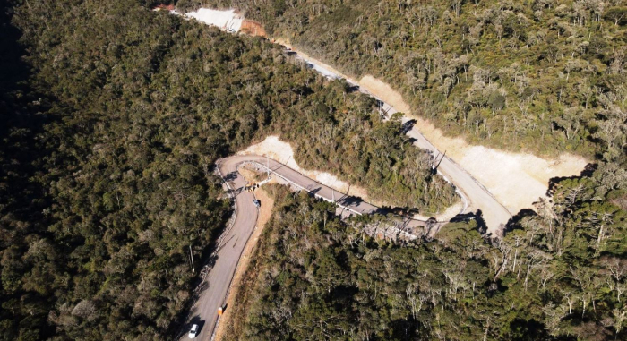 No trecho de Rio Rufino a Urubici, a pavimentação avança rapidamente em um segmento rodoviário de seis quilômetros.