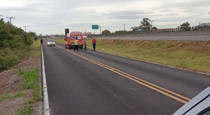 A identidade da vítima ainda não foi confirmada - Foto: Reprodução/Redes Sociais Na manhã desta segunda-feira, 17 de fevereiro, um homem foi encontrado morto na localidade de Bentos, em Laguna, na marginal da BR-101.
