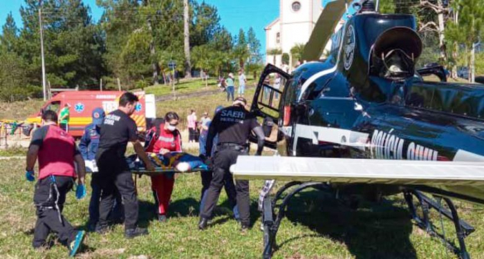 O Saer/Sarasul fez o deslocamento da vítima em apoio aos Bombeiros Militares, devido a complexidade da fratura e do local de difícil acesso, o paciente foi removido pelo helicóptero até Tubarão.
