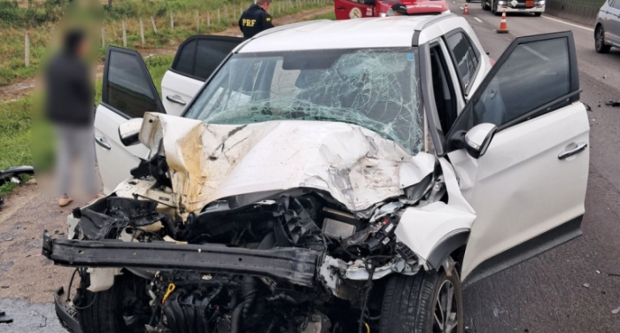 O acidente foi registrado na rodovia federal no no Bairro Costa da Lagoa - Foto: Divulgação Um motorista de 54 anos ficou inconsciente após colidir um Creta na traseira de uma carreta na BR-101, em Jaguaruna, na tarde da última segunda-feira, 15 de julho.