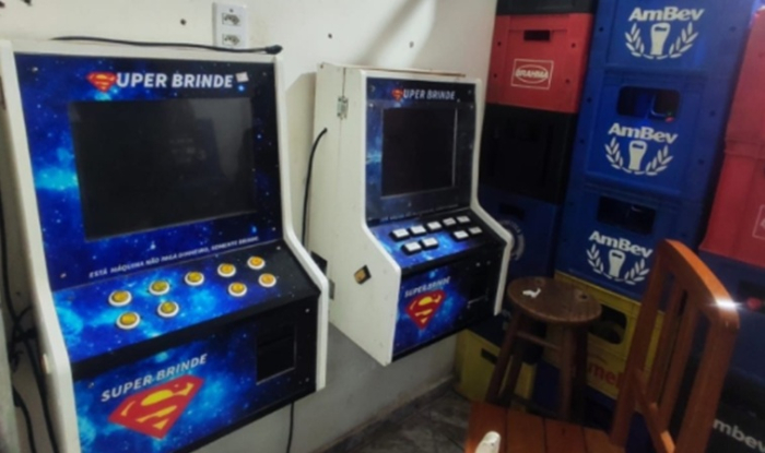 Durante o cumprimento da ordem judicial, os policiais civis encontraram quatro máquinas de jogo escondidas em um quarto situado nos fundos do bar.