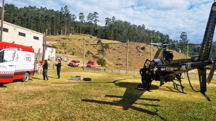 Após atendimento a vitima foi encaminhada pelo Samu até o local de pouso da aeronave do Saer/Sul, que o conduziu até o HNSC em Tubarão.