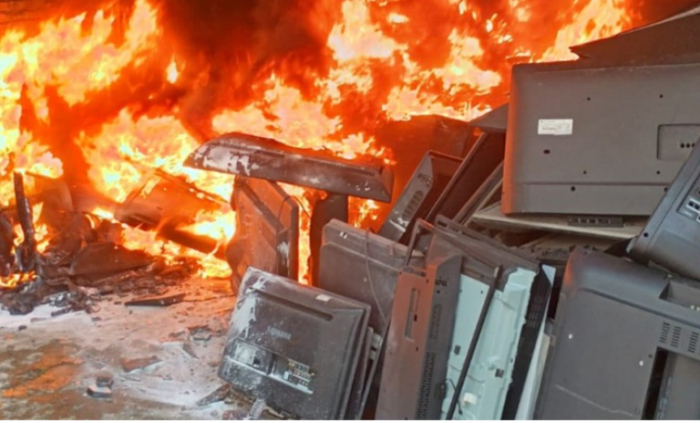De acordo com informações repassadas pelos bombeiros, as chamas se concentraram no depósito, onde havia grande quantidade de material altamente combustível, como plásticos dos televisores antigos.