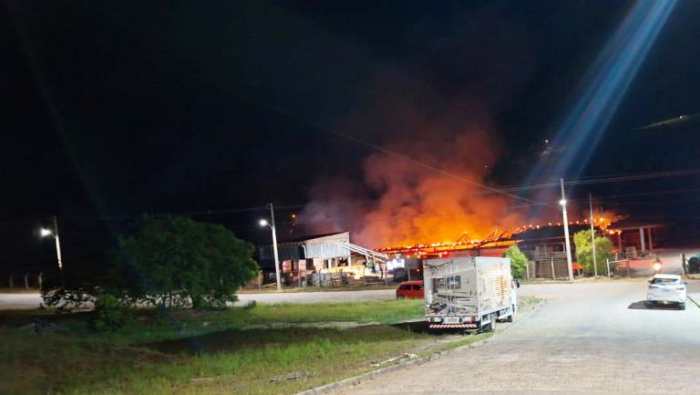 Viaturas especializadas para controlar as chamas - Foto: Divulgação Um incêndio atingiu uma madeireira localizada em Rio Fortuna, na madrugada desta quinta-feira, 16 de outubro.