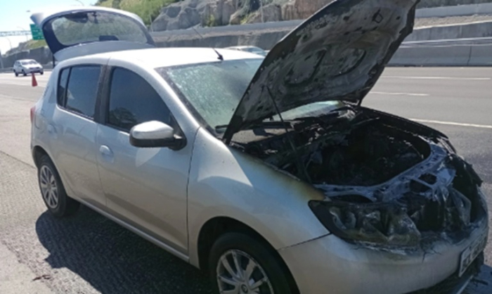 Parte do motor ficou completamente queimada - Foto: Divulgação Um veículo Renault Sandero foi atingido por um incêndio na última quarta-feira, 04 de março, no Bairro Alvorada, em Capivari de Baixo. As chamas foram controladas por testemunhas que utilizaram extintor e água. O motorista, de 70 anos, não ficou ferido.