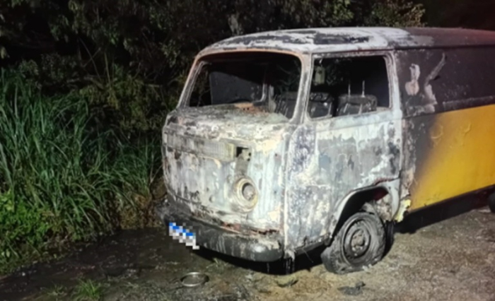 A parte traseira foi preservada parcialmente com o combate ao fogo - Foto: Divulgação Uma Volkswagen Kombi foi atingida por um incêndio na noite dessa quarta-feira, 28 de janeiro, no Bairro Vila Santo Antônio, em Imbituba. O Corpo de Bombeiros foi acionado para combater as chamas que danificaram grande parte do veículo na Rua Jovino Daniel, por volta das 22h45.