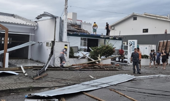 Equipes da Defesa Civil e do Corpo de Bombeiros atuam nos pontos atingidos - Foto: Divulgação O município de Laguna foi atingido na noite do último sábado, 27 de dezembro, por volta das 18h, por uma microexplosão caracterizada por fortes rajadas de vento, chuva intensa e descargas elétricas.