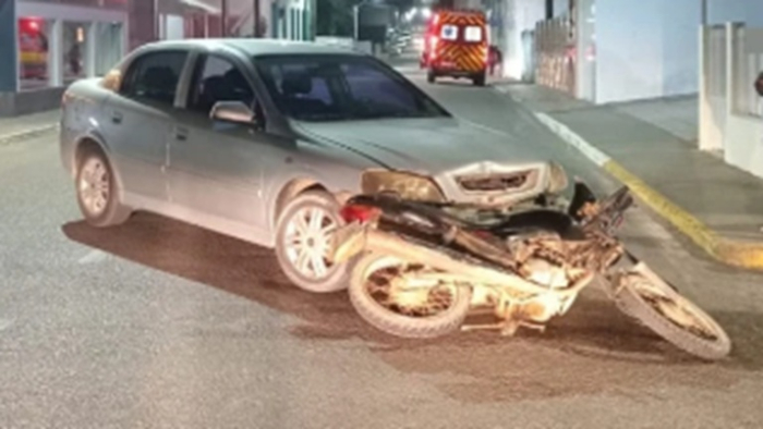 Vítima de 40 anos apresentava um ferimento de corte contuso na perna esquerda - Foto: Divulgação Uma colisão entre um carro e uma motocicleta deixou um homem de 40 anos ferido na noite desta sexta-feira, 24 de abril, no Centro de Imaruí. O acidente ocorreu por volta das 21h20, na Rua Antônio Bittencourt Capanema.