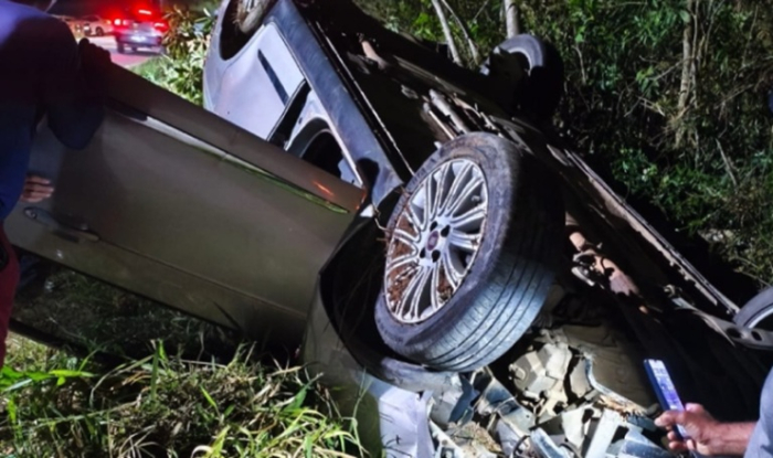O motorista foi socorrido pelos Bombeiros Voluntários - Foto: Divulgação Um motorista de aplicativo perdeu o controle da direção e capotou o veículo na SC-441, próximo ao Centro de Treze de Maio, na noite da última segunda-feira, 29 de setembro.