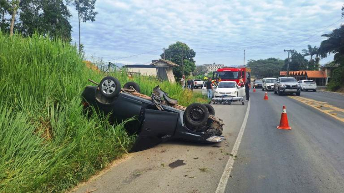 A equipe de socorro realizou o atendimento pré-hospitalar no local e, em seguida, encaminhou a jovem ao hospital - Foto: Divulgação Uma jovem de 23 anos ficou ferida após perder o controle da direção e capotar o veículo que conduzia na rodovia SC-370, no Bairro Rio Bonito, em Braço do Norte.