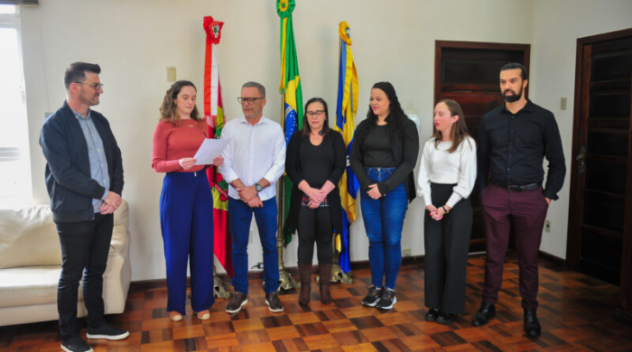 Prefeito Claudir Bitencourt dá posse a novos profissionais da Saúde - Foto: Divulgação Na manhã desta sexta-feira, 31 de outubro, cinco profissionais aprovados no último concurso público tomaram posse em Capivari de Baixo. A cerimônia ocorreu no Gabinete do Prefeito Claudir Bitencourt e marcou o início da atuação dos novos servidores da área da Saúde.