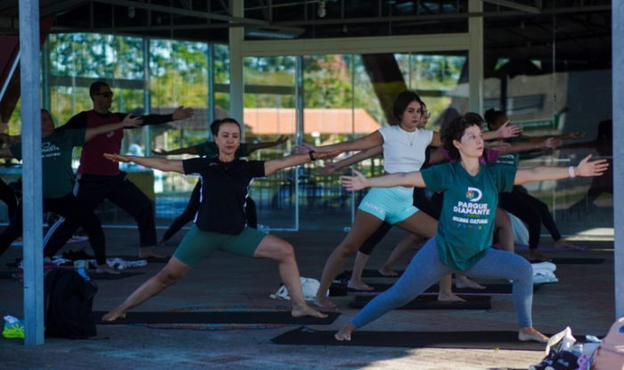 A recomendação é que os interessados em participar leve seu tapete, água, e use roupas confortáveis - Foto: Divulgação O Parque Diamante +Energia realiza mais um Sábado Cultural com aulão de yoga. A partir das 9h, do dia 31 de maio, o público poderá participar da programação gratuita ao ar livre e aprender as técnicas que ajudam a melhorar a flexibilidade, a força, o equilíbrio e a consciência corporal, além de reduzir o estresse, a ansiedade e melhorar a qualidade do sono.