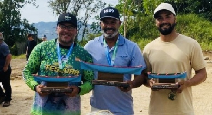 Os três receberam um troféu especial de uma canoa, feito artesanalmente pelo artista Felipe Figueiredo, morador do Distrito de Ribeirão Pequeno, em Laguna.