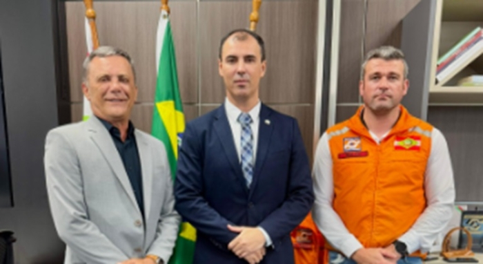 Comitiva de Capivari de Baixo foi recebida pelo Coronel Fabiano - Foto: Divulgação O prefeito de Capivari de Baixo, Claudir Bitencourt, acompanhado do Coordenador da Defesa Civil do município, Odilon, realizou uma importante visita à sede da Defesa Civil de Santa Catarina, em Florianópolis.