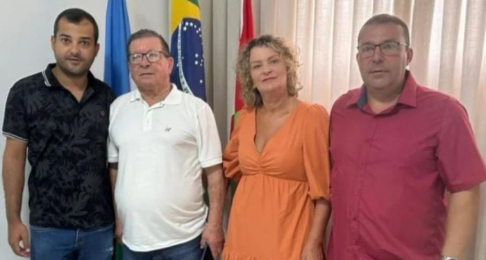 Ato foi realizado na manhã desta sexta, 1º - Foto: Divulgação Nesta sexta-feira, 1º de março, o prefeito de Pescaria Brava, Lourival Izidoro (Progressistas), transmitiu o cargo para a presidente da Câmara de Vereadores, Rosilene Faísca (MDB), a Leia.
