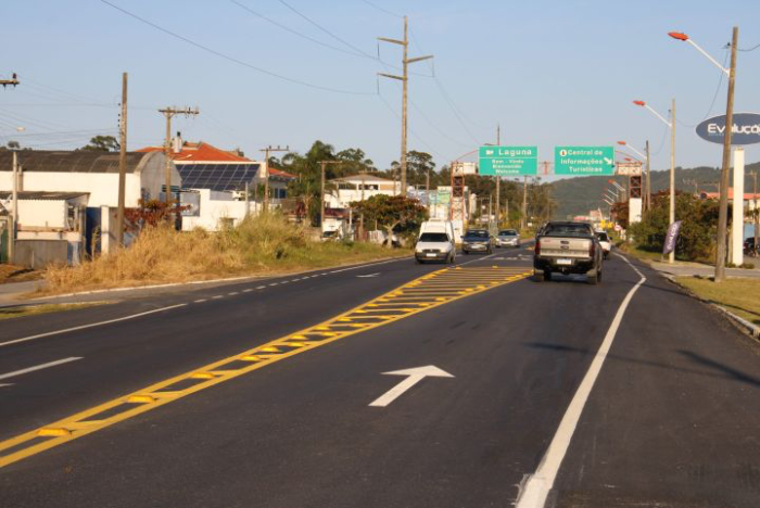 Principal acesso ao município de Laguna, a obra faz parte do programa "Estrada Boa" do Governo do Estado de Santa Catarina e abrange todo o trecho que conecta a BR-101 à rotatória do Laguna Internacional.
