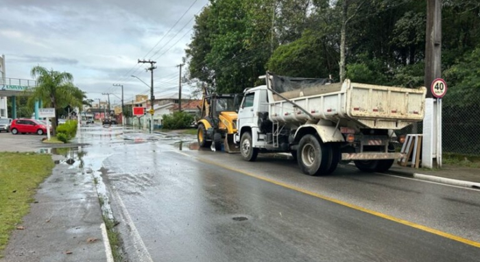 O local foi isolado pela empresa de águas, com apoio da Secretaria de Infraestrutura e da guarda Municipal, e o trânsito na Avenida Nilton Augusto Sachetti foi desviado para a ponte Stélio Cascaes Boabaid.
