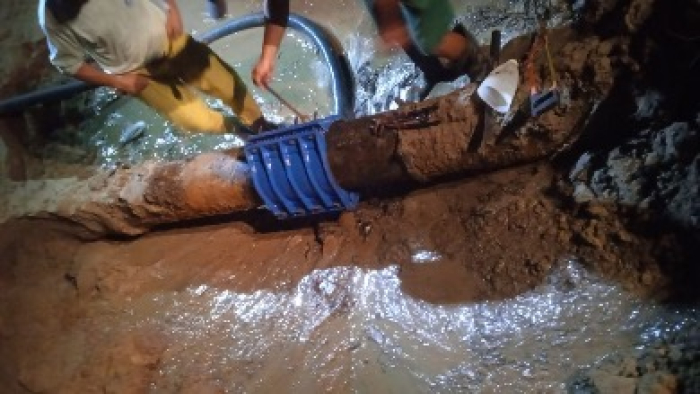 Equipes da Casan trabalham no reparo da adutora rompida - Foto: Divulgação O abastecimento de água voltou a ser comprometido em bairros de Laguna neste domingo (11), após o rompimento de uma adutora no mesmo ponto onde já havia ocorrido um vazamento na noite de sábado, 10 de janeiro.