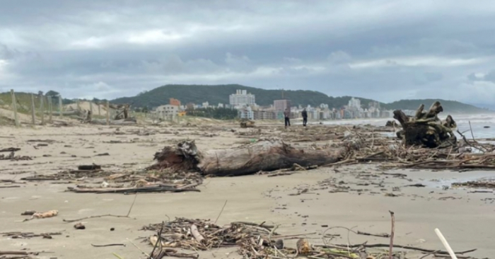 Uma parte do litoral lagunense está tomada por desejos e entulhos desde o início das chuvas que afetaram a região
