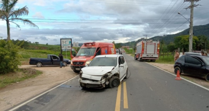 A batida aconteceu na SC-108, em Braço do Norte - Foto: Divulgação Uma colisão frontal deixou três pessoas feridas na tarde desta quarta-feira, 27 de setembro, na rodovia SC-108, no Bairro Uruguaia, em Braço do Norte. O acidente envolveu um GM Celta e um Renault Sandero.