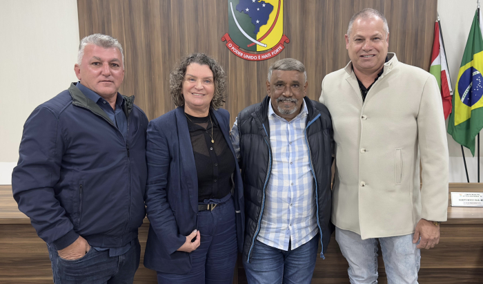 Márcio, Rosilene, José Francisco e Gilberto tomaram posse após a votação - Foto: Divulgação/Revista Única O vereador José Eraldo Francisco, o Zezinho (Progressistas), foi eleito presidente da Câmara de Vereadores de Pescaria Brava.