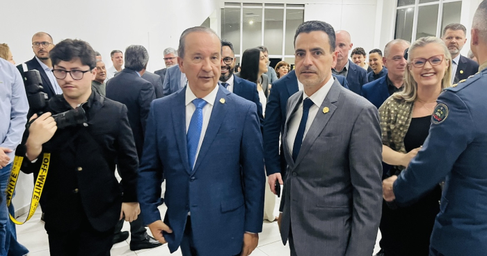 Jorginho Mello e prefeito Estêner Soratto - Foto: Fabiano Bordignon/Revista Única A noite de sexta-feira, que seria marcada apenas por homenagens e discursos protocolares durante a entrega da Comenda Willy Zumblick, acabou rendendo também dois anúncios políticos, no mínimo, surpreendentes.