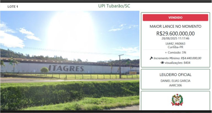 Apesar de a empresa Itagres ter tentado suspender o leilão com um recurso após ter seu pedido de recuperação judicial negado, a Justiça manteve a decisão, permitindo que a venda dos bens prosseguisse.