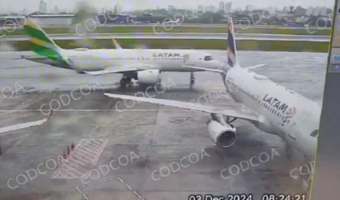 Acidente com aviões foi flagrado por câmeras de segurança – Foto: @Eric Breno/Reprodução Dois aviões da Latam Linhas aéreas se envolveram em um acidente na manhã desta terça-feira, 03 de dezembro, no Aeroporto de Congonhas, em São Paulo. Um vídeo (assista abaixo) gravado por câmeras de segurança mostra o momento da colisão.