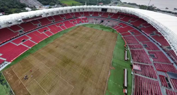 Estádio Beira-rio após a enchente em Porto Alegre - Foto: Divulgação A CBF anunciou na tarde de quarta-feira, 15 de maio, a a paralisação do Campeonato Brasileiro por conta das fortes chuvas no Rio Grande do Sul.