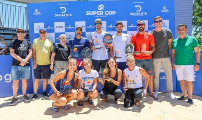 A Super Cup Beach Tennis tem o patrocínio máster de Diamante Energia - Foto: Divulgação Os campeões da Super Cup Beach Tennis – Etapa Diamante estão definidos. Neste domingo, 27 de outubro, no Parque Diamante +Energia, em Capivari de Baixo (SC), os favoritos ratificaram a condição com a dupla feminina formada pela paranaense Vitória Marchezini e Isa Massaioli e a dupla masculina do italiano Michele Cappelletti e do carioca Vini Font faturando o título do torneio.