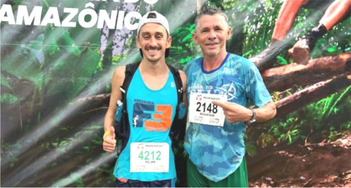 Felipe Costa (E) - Foto: Divulgação O maratonista tubaronense Felipe Costa, atleta da seleção brasileira e atual tricampeão da Maratona de Tubarão, conquistou o lugar mais alto do pódio no ‘Mountain Do Selva Amazônica’, no Amapá. Felipe participou do desafio 63K. No sábado, o atleta foi campeão nos 42K e neste domingo levou o título nos 21K, conquistando assim o primeiro lugar no desafio.