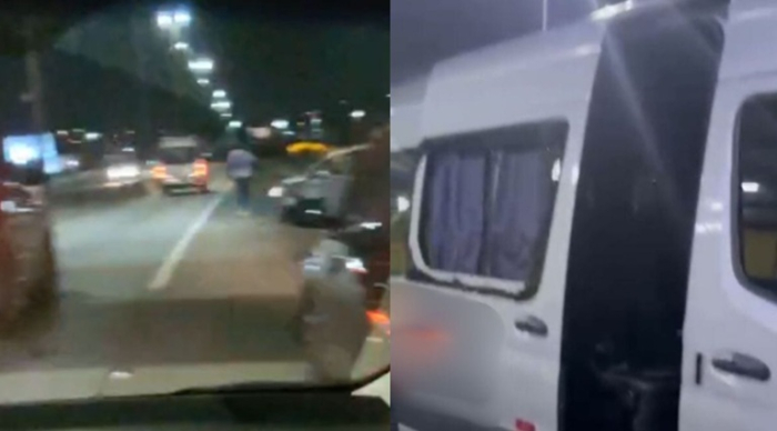 Apesar do fato, não houve feridos. Em um dos vídeos que circula pelas redes sociais, uma pessoa relata que, em determinado momento, um dos carros fechou a frente da van, que aparece em outra gravação com os vidros quebrados.