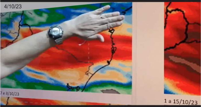 “No momento, o que podemos perceber são três eventos de muita chuva, com chances de trovoadas, ventos, chuvas de granizo, alagamentos e deslizamentos, nesta primeira quinzena de outubro”, informa.