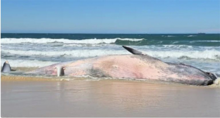 Animal encalhou e morreu na orla da praia - Foto: Divulgação Uma baleia macho da espécie Bryde foi encontrada sem vida na Praia do Rosa, após encalhar na orla. O animal foi localizado na manhã de segunda-feira, 26 de agosto.