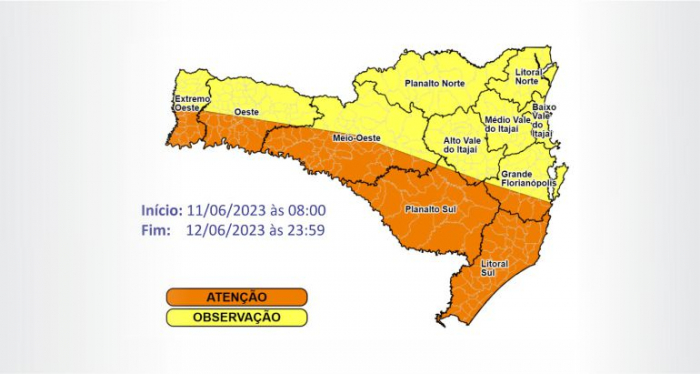 Diante da previsão de mudança brusca no tempo, a Defesa Civil de Santa Catarina emitiu uma nota de Atenção Meteorológica para declínio acentuado das temperaturas a partir da madrugada deste domingo.