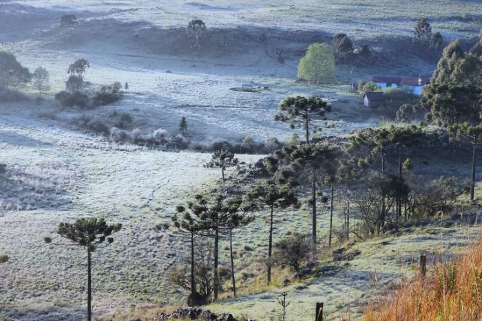 Nas áreas com altitude acima de 700 a 800 metros, os termômetros podem marcar temperaturas abaixo de 0°C, favorecendo a formação de geada em boa parte do estado, especialmente no Meio-Oeste, Planalto Sul e Planalto Norte.